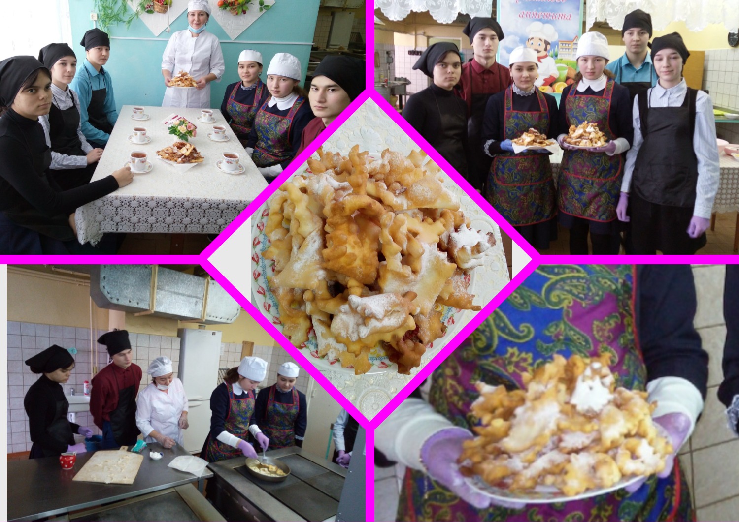 В нашей школе питание играет большую роль. Повара готовят вкуснейшие обеды, а еще помогли ребятам полностью погрузиться в мир кулинарии. В рамках флешмоба «Мое национальное блюдо» , который организовало Министерство образовании и науки, наши повара показали мастер-класс по приготовлению национального блюда «Хворост» («Кош теле»). Учащиеся 10 класса научились быстро и аккуратно готовить сложные по своему приготовлению блюдо и остались очень довольны полученными результатами.