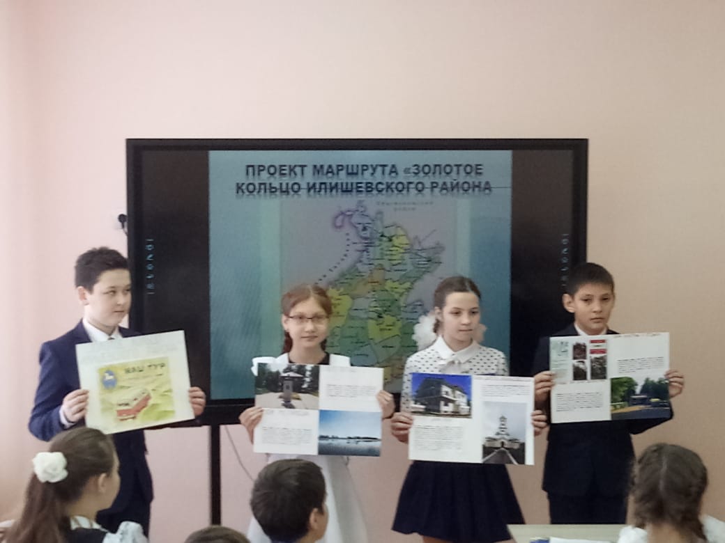 9 февраля прошел классный час в 5А классе, на тему "Золотое кольцо Илишевского района". ребята создали проект туристического маршрута по малой родине. Узнали и пополнили имеющие знания, узнали о новых местах и памятниках природы района. Классный час провела Хасанова Г.Н.