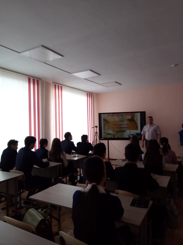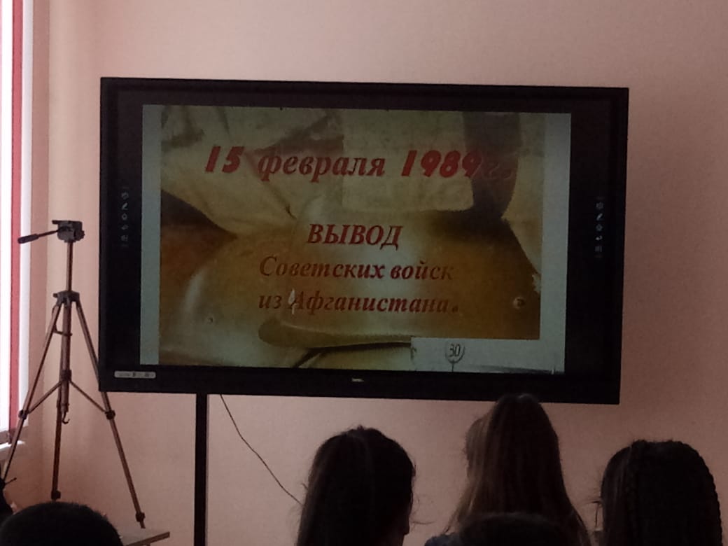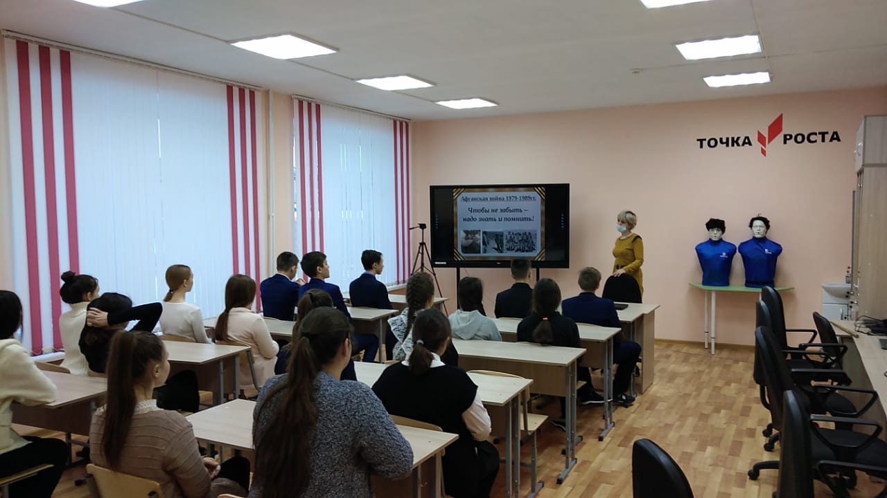 Сегодня в честь этой даты, на базе "Точка роста" был проведен классный час. Где учащиеся узнали много нового о советских войсках и Афганистане, а также просмотрели фильм. Классный час провел Ганиев Р.О.