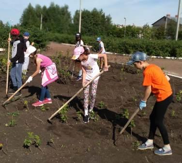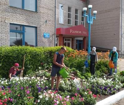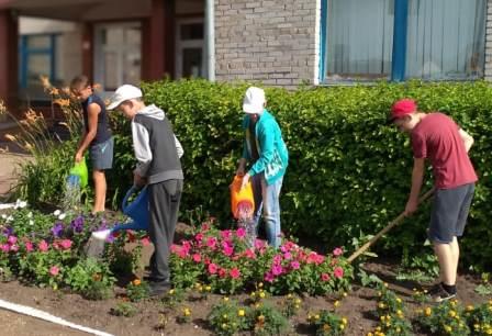 В течение всего летнего периода вели работы на территории школы: косили и убирали травы и сорняки, пропалывали и поливали цветники.