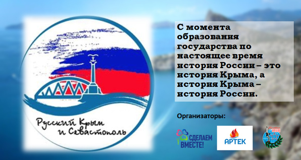 «Русский Крым и Севастополь» – всероссийская социальная акция, задача которой - привить ответственное и бережное отношение к истории России и малой Родины, патриотическое воспитание школьников на примерах подвигов соотечественников-земляков в прошлом и в наши дни, сформировать среди школьников понимание общности Российского государства и Крыма в прошлом и настоящем.