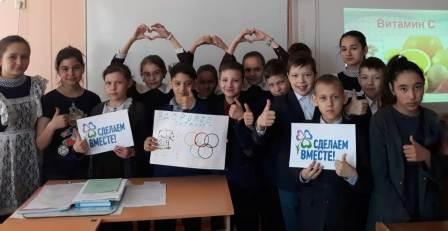 Лидеры акции Ибрагимова Карина и Мустафина Оксана из 9Б класса провели мероприятие в 5-6 классах. Дети изучили основы правильного питания, выяснили свойства полезных продуктов, научились составлять график приема пищи. По завершении урока ученики закрепили свои знания, участвуя в викторинах.