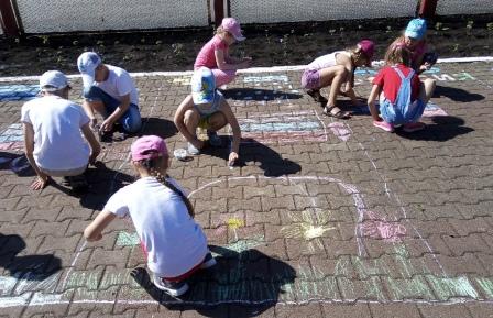 В преддверии Дня России в лагере с дневным пребыванием детей «Дружба» на базе МБОУ СОШ № 4 был организован конкурс детских рисунков на асфальте «Я люблю Россию!». Мероприятие прошло на территории школы, в котором приняли участие все ученики .