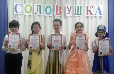 10 декабря в МАУ ДО ЦДТ прошел районный детский вокальный конкурс народной песни "Соловушка", в котором участвовали самые талантливые, голосистые учащиеся нашей школы и в очередной раз выступили очень успешно. Наши юные звездочки удивили всех артистичностью и были награждены дипломами III степени- Файрузов Руслан, Зарипова Камила, Гафиятова Азалия, Загидуллина Аделия, Газизова Алина; II степени-Шайхайдарова Элина, I степени- Фазылова Лилияна. А обладательница самого проникновенного и нежного голоса, ученица 7б класса Арсланова Айсылу, поразив всех зрителей и жюри по праву удостоилась Гран-При! Поздравляем! Желаем творческих успехов!