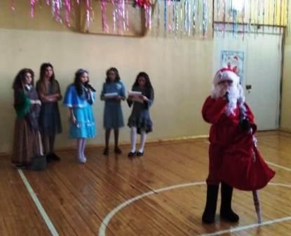 И по традиции в нашей школе прошёл новогодний вечер для учащихся 6-7 классов. Представление организовали ученики 6 б класса. Дети, переодевшись в Баба Ягу, Снежную Цацу, Деда Мороза и Снегурочку, показали своё актерское мастерство. Праздник закончился дискотекой.