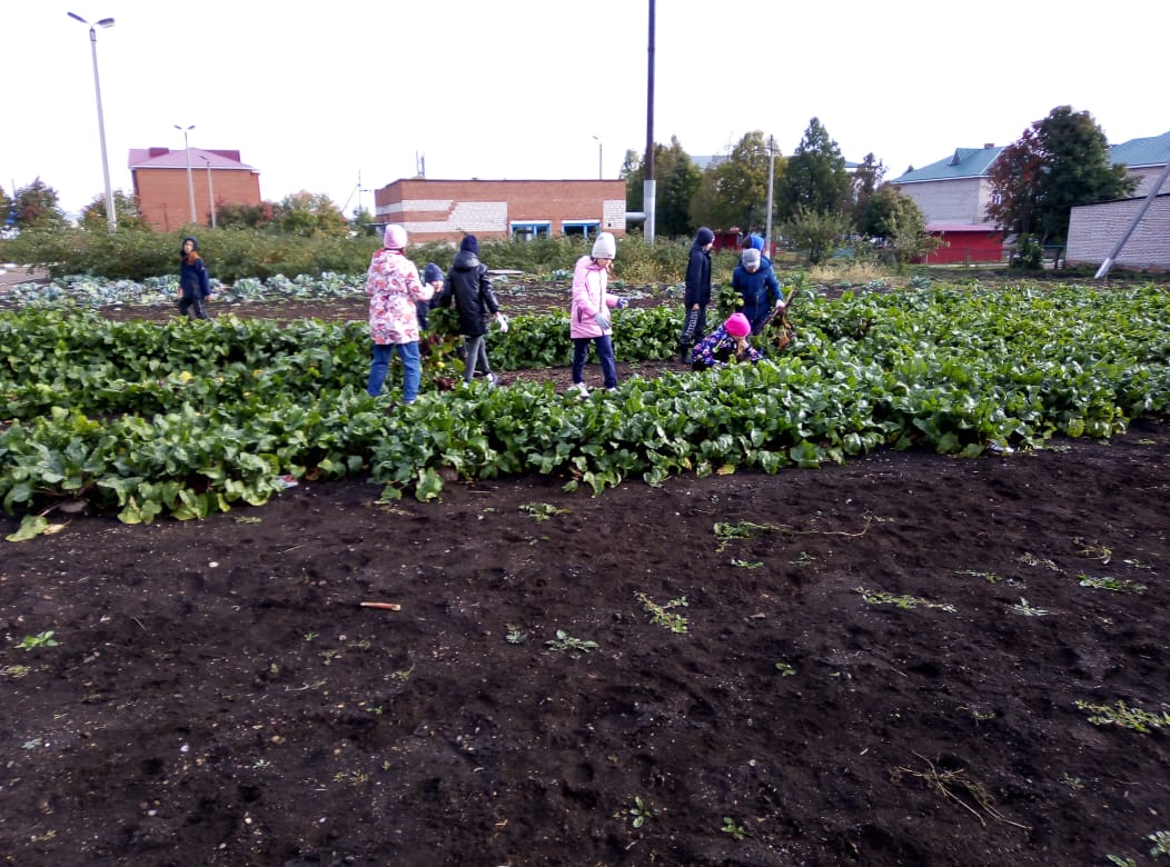 Осень — время сбора урожая. Сельскохозяйственная продукция, выращенная на школьном приусадебном участке используется для организации питания учащихся в школьной столовой. Сентябрьская погода порадовала тёплым солнечным деньком. В этом году в пришкольном участке выращен и собран богатый урожай овощей.