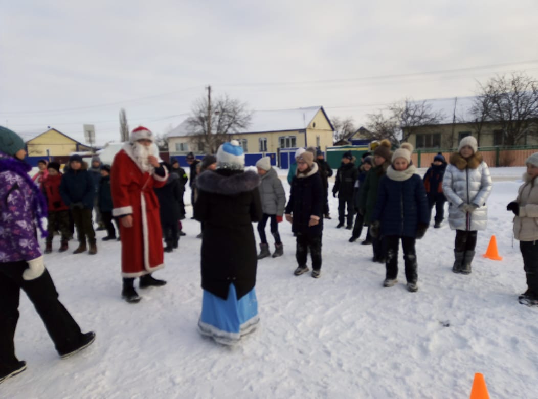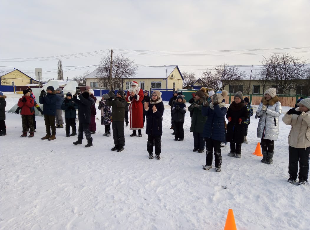 Сегодня на территории ДЮСШ 2, где оформлен новогодний городок, для учащихся 5 классов МБОУ СОШ 4 был организован хоровод с Дедом Морозом и Снегурочкой.