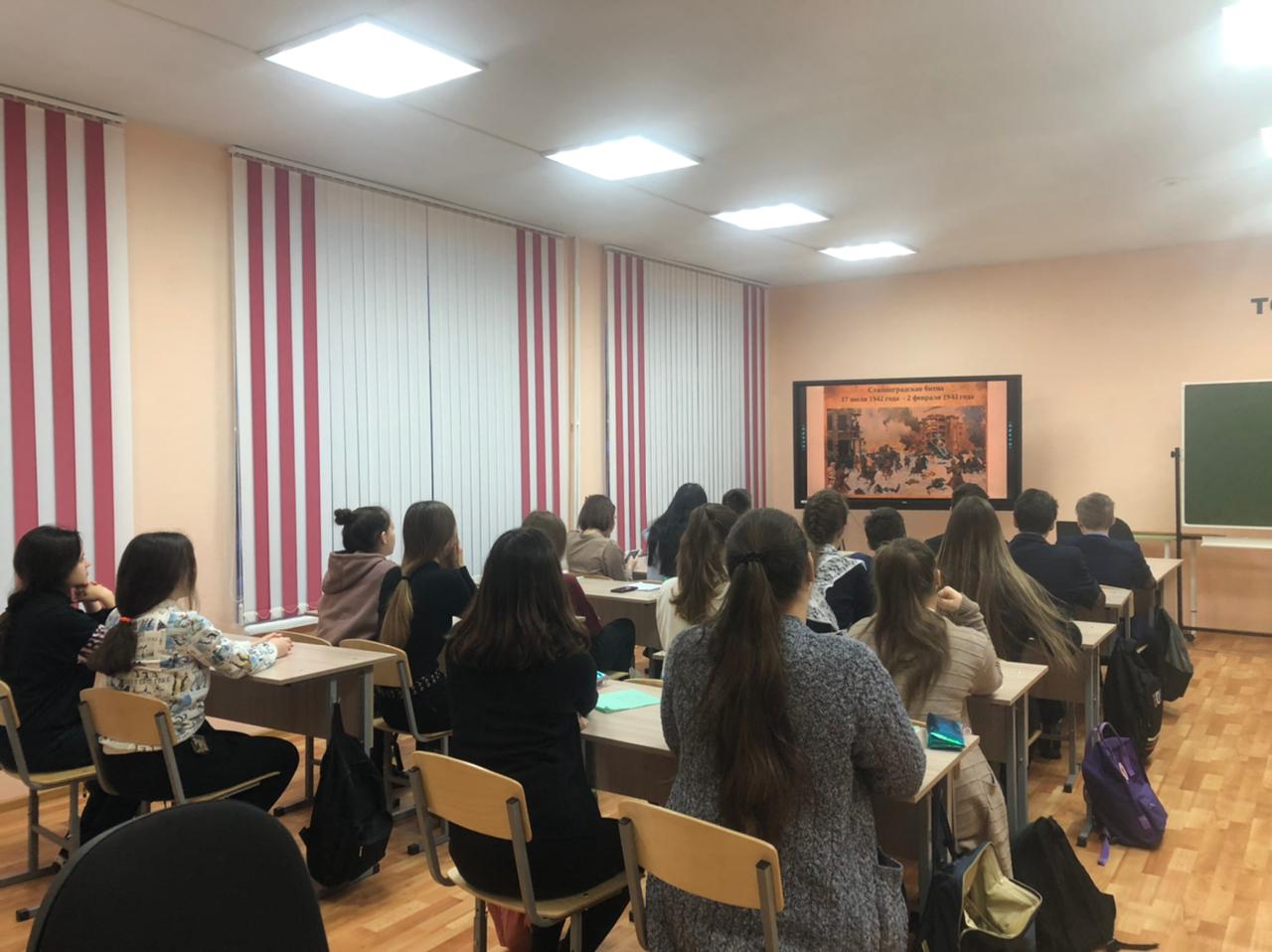 "Ты а нашей памяти и сердце, Сталинград".... Все мы знаем, что 2 февраля 1943 года победой советских войск закончилась героическая Сталинградская битва. В нашей школе эта дата не проходит без внимания. Сегодня был проведен Урок Мужеств "Подвиг на века"