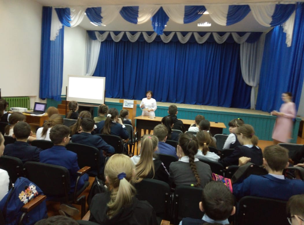 В рамках Недели здорового питания на этой неделе в нашей школе проводятся цикл мероприятии, посвященные теме здорового и правильного питания: творческие и познавательные занятия, воспитательные беседы, презентации, конкурсы рисунков и стенгазет, в ходе которых обучающиеся знакомятся с правильным рационом питания. Так, сегодня фельдшер школы Габдрахманова А. Х. провела лекцию на тему «Я выбираю здоровый образ жизни». Лекцию слушали 5-8 классы. Также прошли анкетирование. Они открыли для себя много нового, расширили кругозор.
